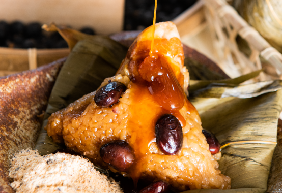 地元丹波篠山産の生のもち米を使い、モッチリとした食感、豚肉はとろける角煮に、黒豆はふっくら甘みを持ち、従来の粽(ちまき)とは異なった味わいになります。